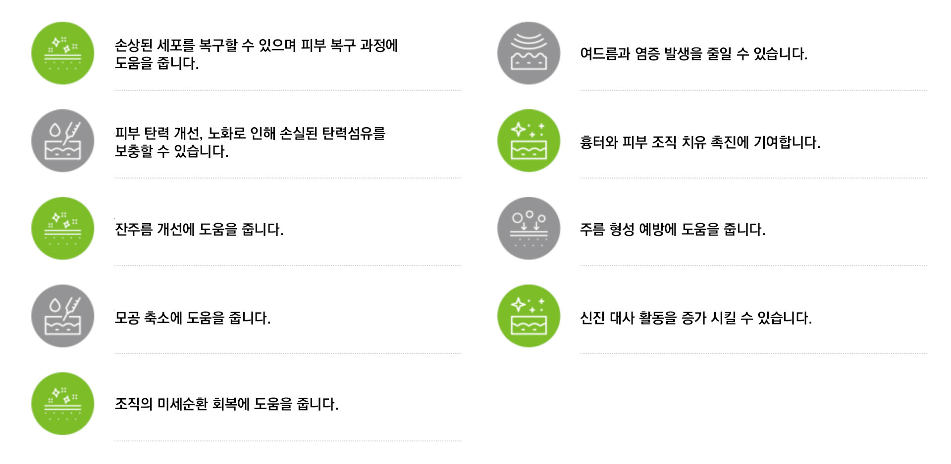 ๊ฒฐ๊ณผ์ ์ผ๋ก ํผ๋ถ๊ฐ ์ฒ์ง๊ณผ ์กฐ๊ธฐ ์ฃผ๋ฆ ์์ด ์ด์ดํ๊ณ ์ ์ฐํ๋ฉฐ ๋งค๋๋ฝ๊ฒ ๋ณด์ผ ์ ์์ต๋๋ค.